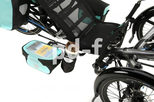 | Bildunterschrift: | Der Liegeradspezialist HP Velotech bietet Packtaschenhalterungen für seine Trikes an, mit denen sich der Raum hinter und unter dem Sitz ideal nutzen lässt. Aber auch Smartphone- und Getränkehalterungen sind neu im Programm. |