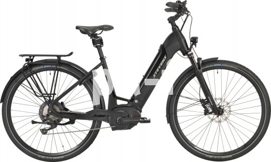 | Bildunterschrift: | Sportliche E-Power und eine hochwertige Komponentenausstattung wie z.B. Scheibenbremsen, Sattelfederung und Federgabel bietet das E-Citybike "E-Triton Luxe" von Hersteller Stevens. Die Rahmenvariante Forma ermöglicht einen unbehinderten Durchstieg; der Akku ist vorn im Rahmen integriert. |