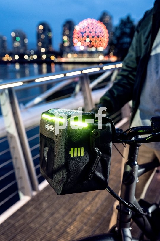 | Bildunterschrift: | Speziell für E-Bike-Nutzer hat Taschenspezialist Ortlieb seine Lenkertasche "E-Glow" konzipiert. Ein Led-Streifen garantiert Sichtbarkeit, leuchtet aber auch den Inhalt aus. Energie kommt über den Fahrradakku oder eine Powerbank. Zwei seitliche Flaschenhalter bieten Ersatz für den bei E-Bikes oft wegen des Akkus fehlenden zweiten Halter am Rahmen. |