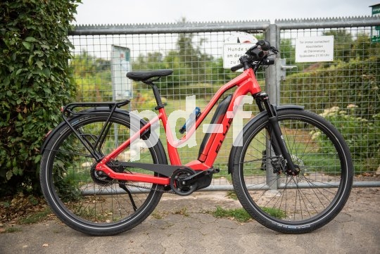 | Bildunterschrift: | Als praktischer Schutz bietet sich ein Faltschloss an. Das Schloss kann einfach am Rahmen egal welcher Art angebaut werden. Auch an Trapezrahmen wie hier am "Upstreet 5" von Flyer (ab 3.499 Euro). Praktisch ist, dass die Verschraubung genau in die Bohrungen der Flaschenhalterung passt. |