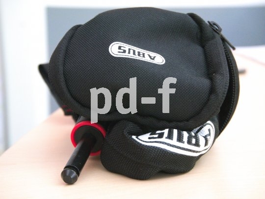 | Bildunterschrift: | Kabel- bzw. Kettenschlösser transportiert man am besten in einer Tasche, die sich auch gut am Rahmen befestigen lässt. So schlagen keine Metallteile gegen den Rahmen, und das Schloss macht sich auch nicht wie eine Schlange aus dem Fahrradkorb davon. |