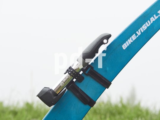| Bildunterschrift: | Für eine Tour macht es immer Sinn, eine Luftpumpe dabei zu haben. Aber wenn man keinen Reifen hat? Egal, es sieht am Rahmen professioneller aus. |
