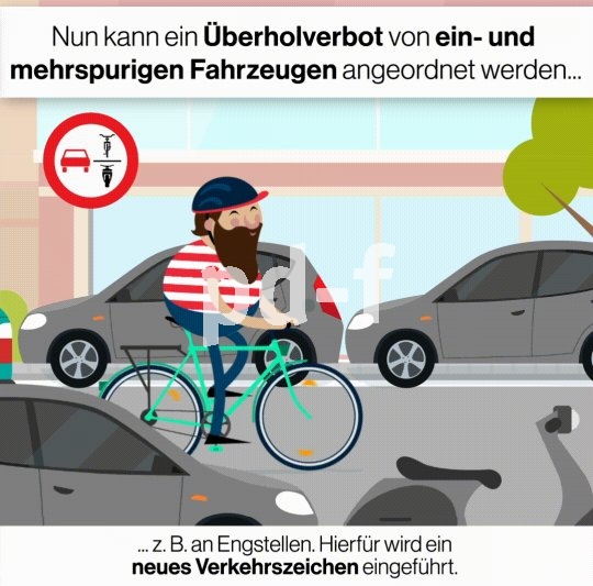 | Bildunterschrift: | Die novellierte Straßenverkehrsordnung sieht die Einführung eines neuen Verkehrszeichens vor, welches das Überholen von einspurigen Fahrzeugen durch mehrspurige Fahrzeuge verbietet. So könnte es aussehen. |