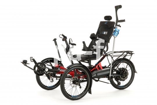 | Bildunterschrift: | Das Scorpion plus ist ein Liegedreirad in Reha-Ausführung. Dank elektrischer Motorunterstützung ist das höhere Gewicht des komplexen Fahrzeugs kein Problem. |