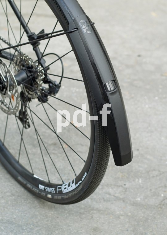 | Bildunterschrift: | Speziell für sportliche Räder ist das Schutzblech "Speedrocker" von SKS konzipiert. Für Gruppenausfahrten gibt es mit der "Extension" eine perfekt passende Verlängerung, die Mitfahrende von Schmutzspritzern verschont. |