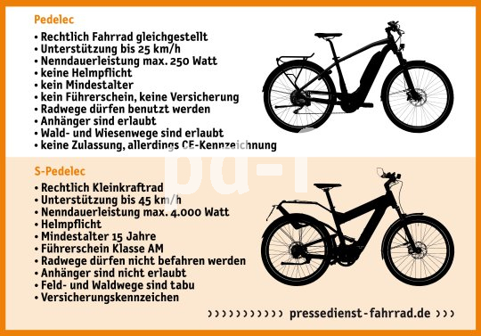 | Bildunterschrift: | So unterscheiden sich Pedelecs und die sogenannten S-Pedelecs der schnellen Klasse rein rechtlich voneinander. |