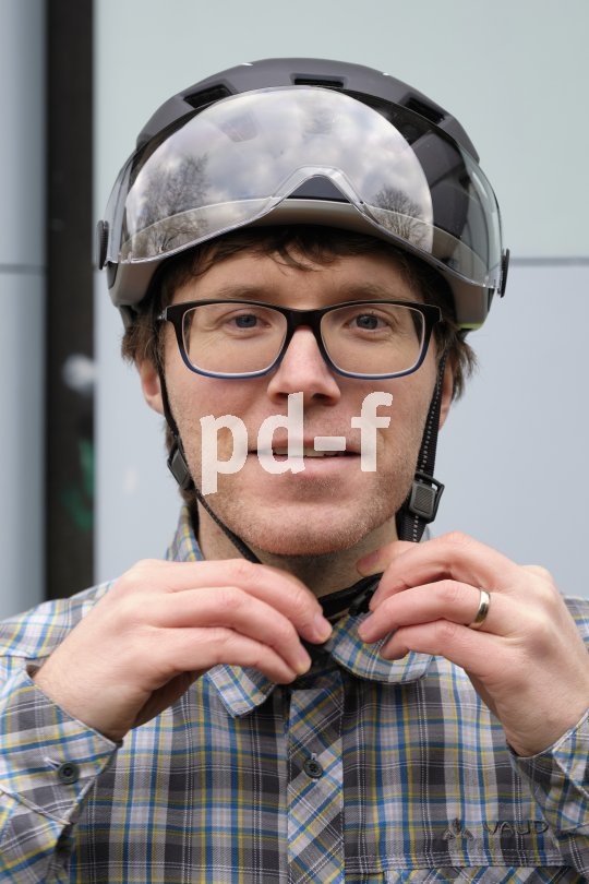 | Bildunterschrift: | Wenn der Helm "obenrum" richtig sitzt, müssen die Riemchen entsprechend eingestellt werden. |