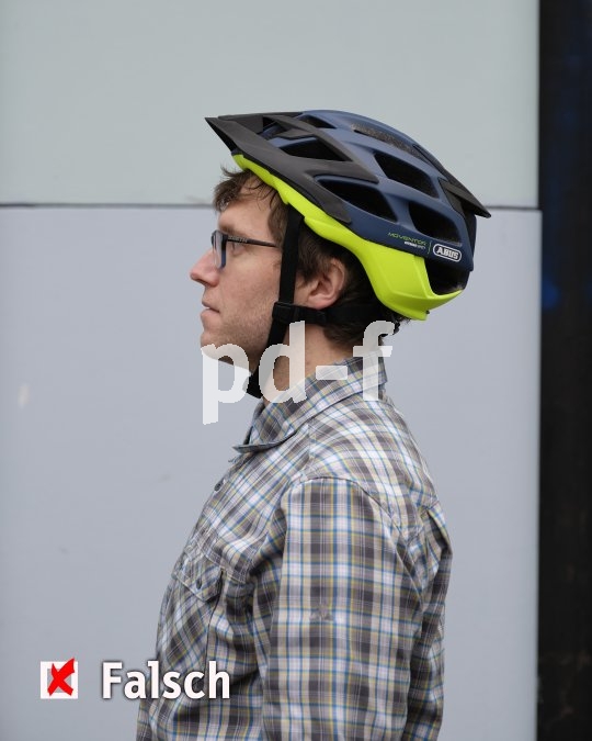 Bildunterschrift: So sitzt der Helm zu weit hinten.