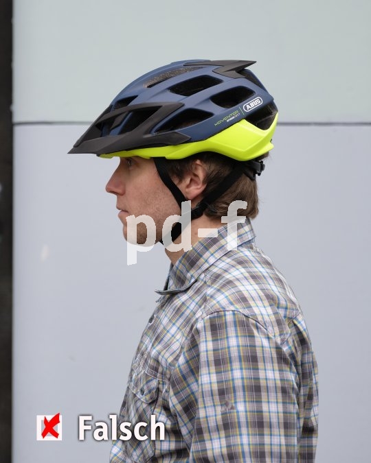 Bildunterschrift: Deser Helm sitzt zu tief in der Stirn.