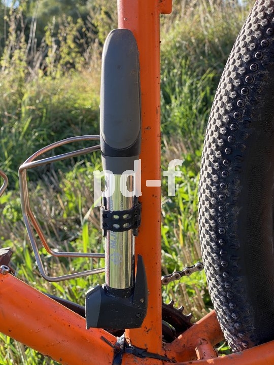 Bildunterschrift: Platzsparend und sinnvoll ist die Montage der Luftpumpe an der Trinkflaschenhalterung.