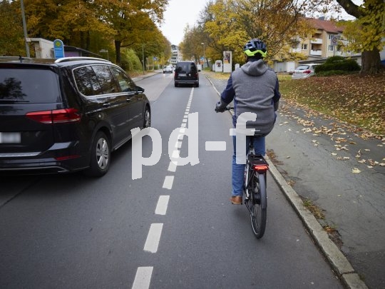 | Bildunterschrift: | Auf speziellen Schutzstreifen können Radfahrende sicher unterwegs sein - Autos müssen hier den erforderlichen Mindestabstand von 1,5 Metern einhalten. |