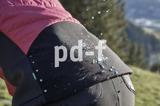 | Bildunterschrift: | Wenn das Wasser von oben einfach abperlt statt einzudringen, ist die Imprägnierung des Kleidungsstückes intakt. |
