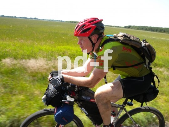 | Bildunterschrift: | Der Triathlonaufsatz am Lenker macht auch am Reiserad Sinn. Bei Gegenwind kann man so die Arme nah an den Körper bringen, wovon die Aerodynamik deutlich profitiert. |