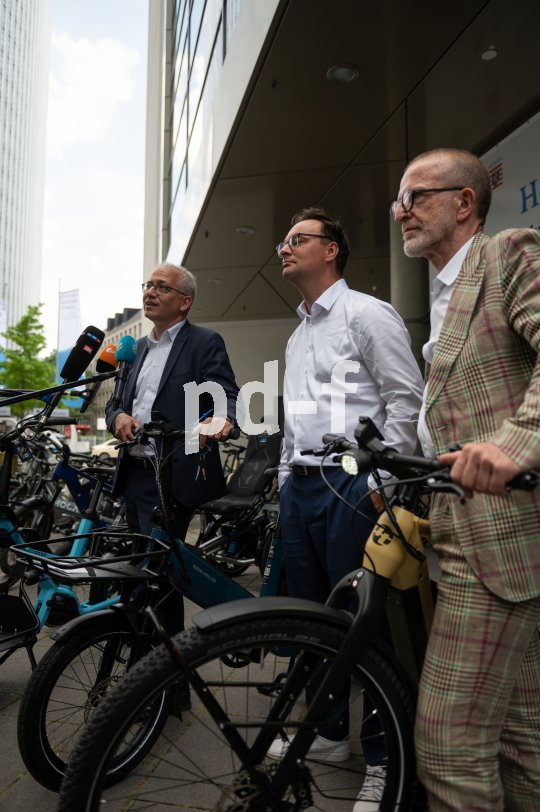 | Bildunterschrift: | v.l.n.r.: Der hessische Minister für Wirtschaft, Energie, Verkehr und Wohnen, Tarek Al-Wazir, der Parlamentarische Staatssekretär beim Bundesminsterium für Digitales und Verkehr, Oliver Luksic und der Dezernent für Mobilität und Gesundheit in Frankfurt, Stefan Majer. |