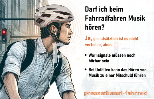 | Bildunterschrift: | Fahrradfahrer, die auf dem Rad Musik hören, müssen die Lautstärke so einstellen, dass sie akustische Warnzeichen wie Klingeln oder Sirenen immer noch wahrnehmen können. |