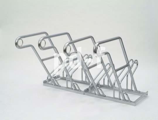 Bildunterschrift: An den großen Bügeln lassen sich Fahrräder gut anlehnen und anschließen.