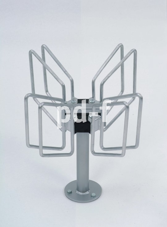 | Bildunterschrift: | Ein Klassiker des Fahrradparkens: zwei Metallbügel, die das Vorderrad in die Zange nehmen, hier halbkreisförmig angeordnet. |