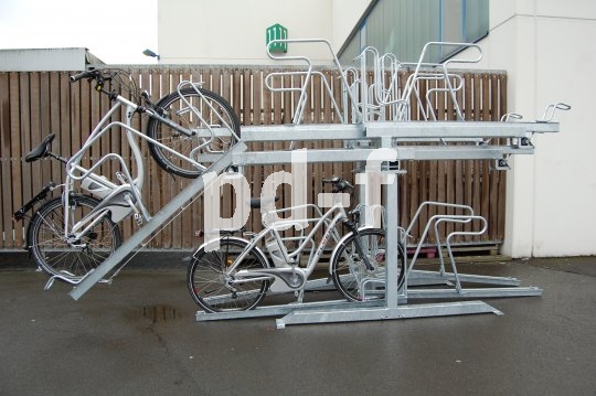 | Bildunterschrift: | Doppelstöckige Abstellanlagen findet man etwa in Radstationen am Bahnhof. Auch ein schweres E-Bike lässt sich ohne großen Kraftaufwand ins Obergeschoss befördern. |