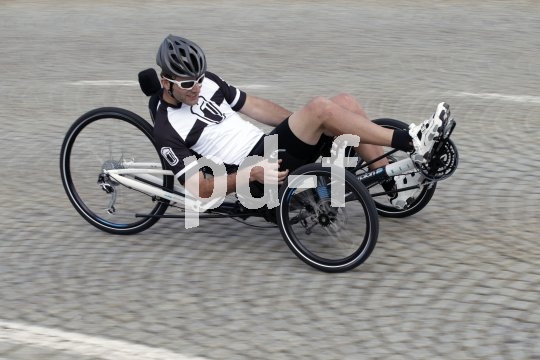 | Bildunterschrift: | In den Wiegetritt wechseln kann man beim Liegerad natürlich nicht. Dafür kann sich der Pilot an der Sitzschale optimal abstützen, um all seine Kraft aufs Pedal zu bringen. |