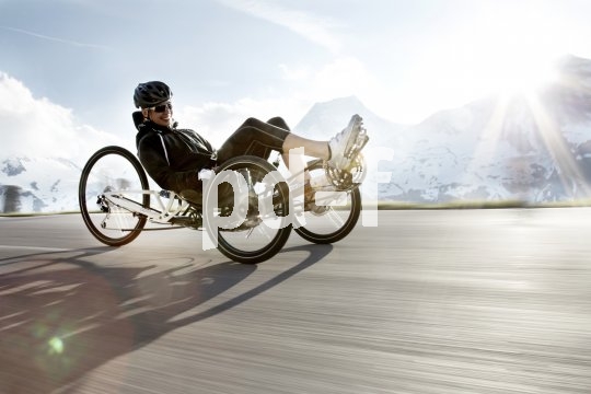 Bildunterschrift: Auch bergige Touren lassen sich mit einem sportlichen Liegerad gut bewältigen.