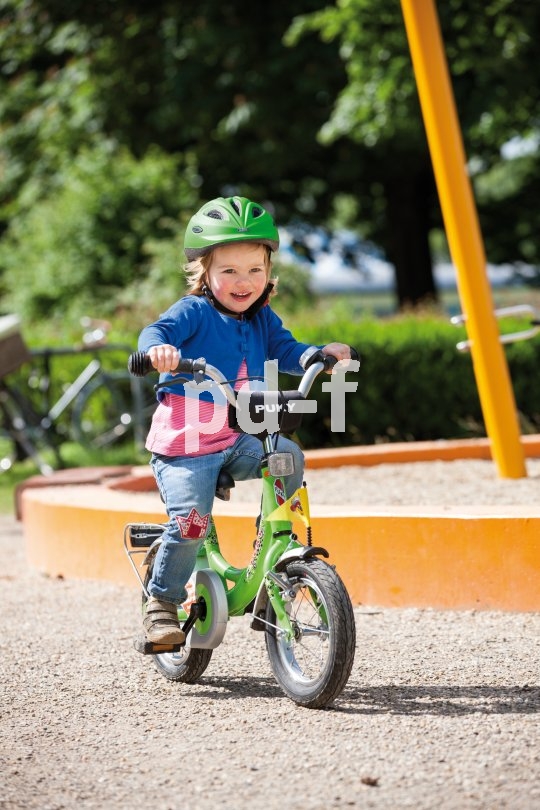 | Bildunterschrift: | Kleine Kinder lassen sich leicht ablenken und gehen beim Radeln immer mal wieder zu Boden. Da ist die "Helmpflicht" durch Mama und Papa keineswegs als übervorsichtig abzutun. |