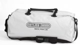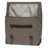 Eine Person tippt mit dem Finger auf das Display eines Smartphones oder Navigationsgeräts in einer Klarsichthülle auf dem Deckel einer Lenkertasche eines Fahrrades.