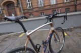 Eine Unterschrift auf dem Rahmen eines Rennrades.