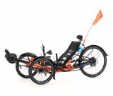 Ansicht des Bereiches um den Motor eines E-Bikes während der Fahrt.