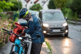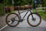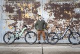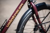 Ein grünes Fahrrad in klassischer Schwanenhalsform mit beigen Reifen, Lenkergriffen und Sattel.