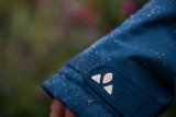 Eine Person wirft einen zusammengeknüllten Fahrradschlauch in eine Mülltonne.