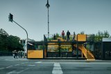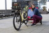 In einem einseitig offenen Metallcontainer stehen mehrere Fahrräder an Haltevorrichtungen.