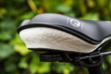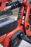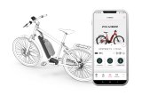 Detailaufnahme eines E-Bike-Rahmens mit einem Aufkleber, der auf einen GPS-Tracker hinweist.