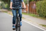 Ansicht des Lenkers eines Fahrrads mit einer Hand am Griff.