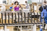 Die Hand einer Person, die ein Bauteil aus einer Verpackung auf einem Tisch nimmt.
