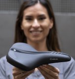 Eine Person öffnet die Klemmung der Sattelstütze im Fahrradrahmen, um die Sattelhöhe einzustellen.