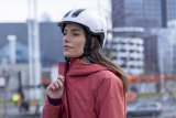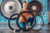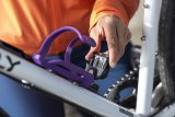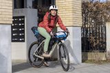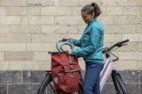 Freisteller einer geöffneten blauen Fahrradtasche.