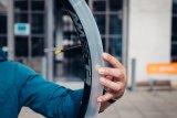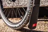 Freisteller einer geschlossenen schwarzen Hinterradtasche.