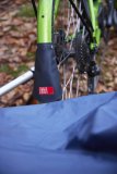 Freisteller einer geschlossenen blauen Hinterradtasche.