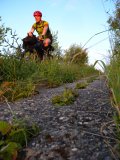 Zwei Personen stehen mit Fahrrädern mit Bikepacking-Taschen daran am Waldrand.