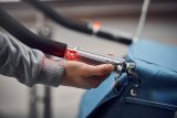 Eine Person schaltet den Scheinwerfer an der Gabel eines Fahrrades an und hält eine Hand in den Lichtschein.