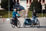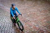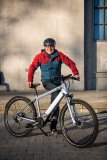 Ansicht des Bereiches um den Motor eines E-Bikes während der Fahrt.