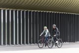 Eine Person pumpt mit einer Standpumpe den Hinterreifen eines E-Mountainbikes auf.