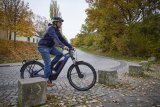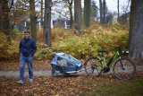 Ein Klettband sichert den Hosenbund einer radfahrenden Person vor der Kette und dem Kettenblatt direkt daneben.
