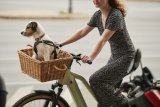 Am Gepäckträger eines Fahrrades leuchtet ein Bremslicht rot.