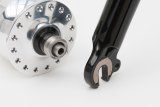 Ein Mann fährt auf einem E-Bike über eine Straßenkreuzung mit Straßenbahnschienen.
