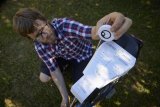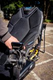 Ein Mann misst an einem E-Bike mit einem Maßband den Abstand zwischen Sattel und Tretlager.