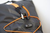 Eine Person montiert einen Gepäckträger mit Schnellverschlüssen an einem Fahrrad.