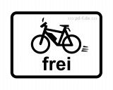 Zwei Personen fahren in dieselbe Richtung auf Fahrrädern durch die Stadt ? eine auf der Fahrbahn und eine auf dem geteilten Fuß- und Radweg.