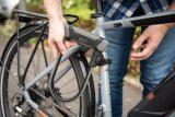 Fahrrad wird mit Schloss angeschlossen