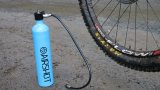 Eine Person hält ein Laufrad an der Nabe vor sich und greift die Mutter eines Schnellspanners mit zwei Fingern.
